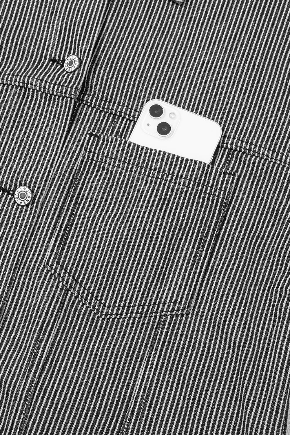 Blue Stripe Washed Oversize Pocketed Denim Jacket