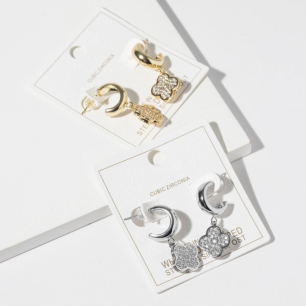 Elevate your style with our Quatre Earrings! Handcrafted with gold dipped CZ stones, these drop dangle mini hoops feature a stunning quatrefoil design for a touch of elegance. Perfect for any occasion, these earrings will add a subtle shine to any outfit.
